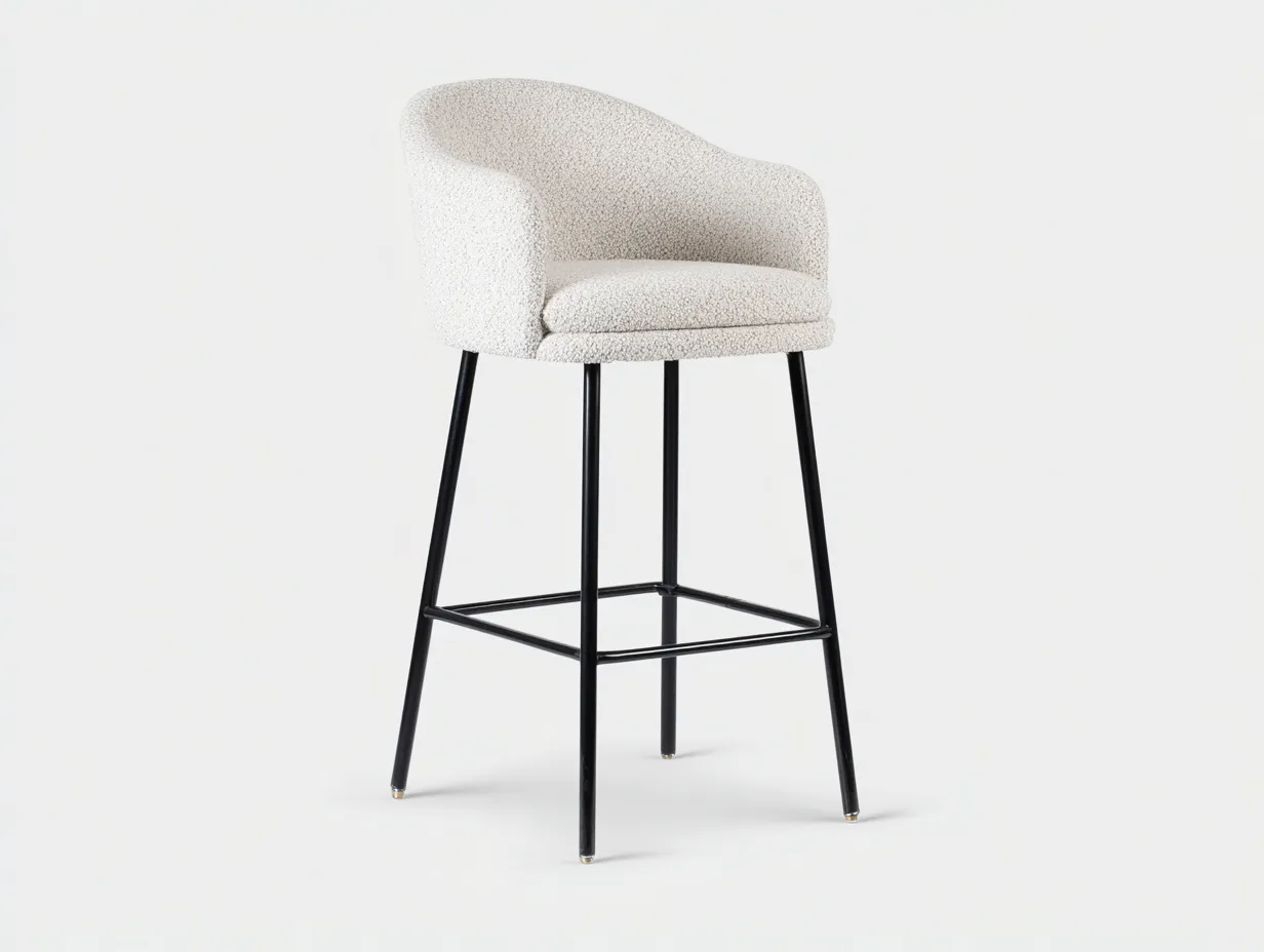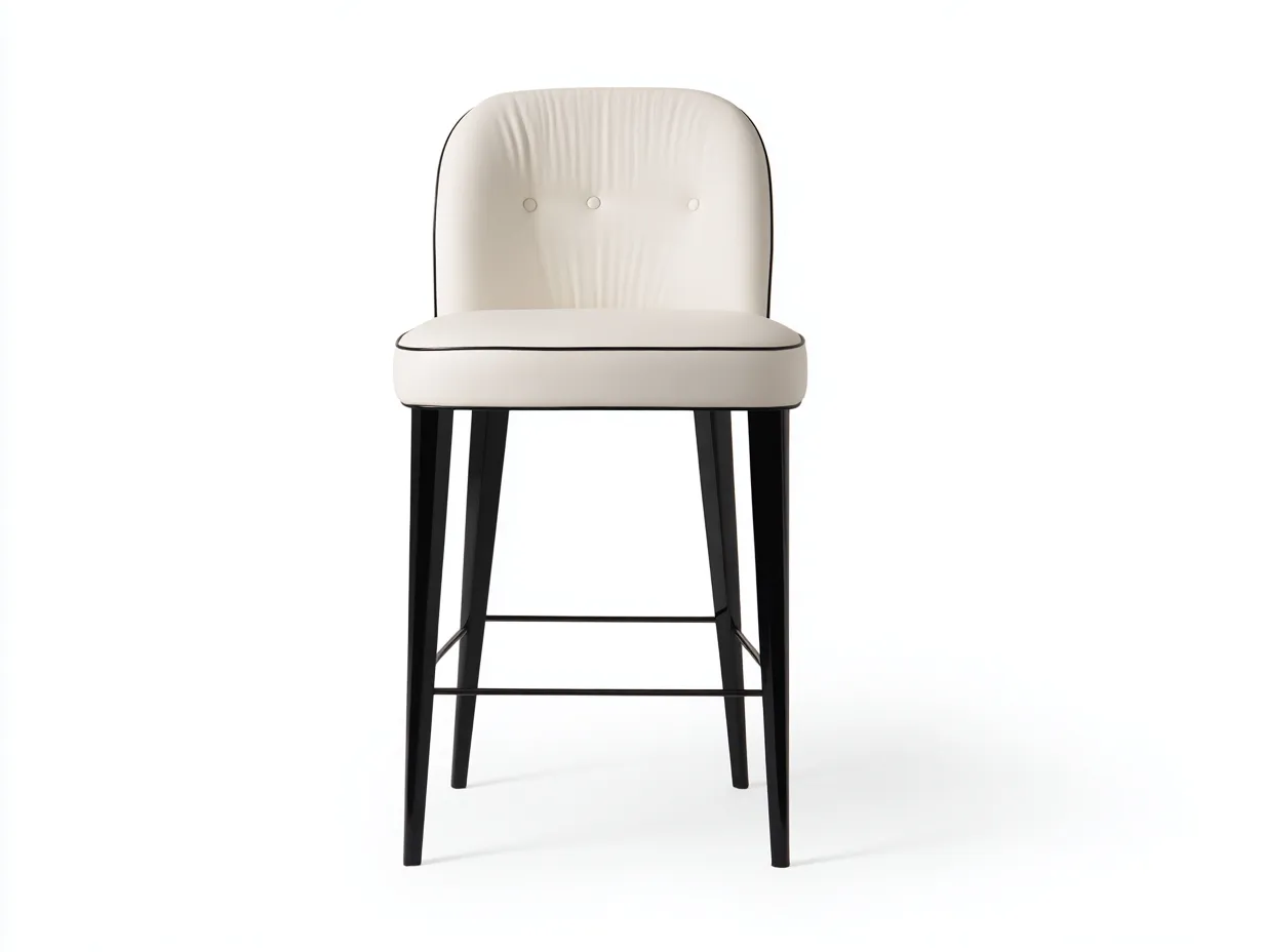 Taburete de bar tapizado en blanco marfil con patas negras y detalle acolchado en respaldo 45 x 48 x 101 cm - estilo sofisticado y actual