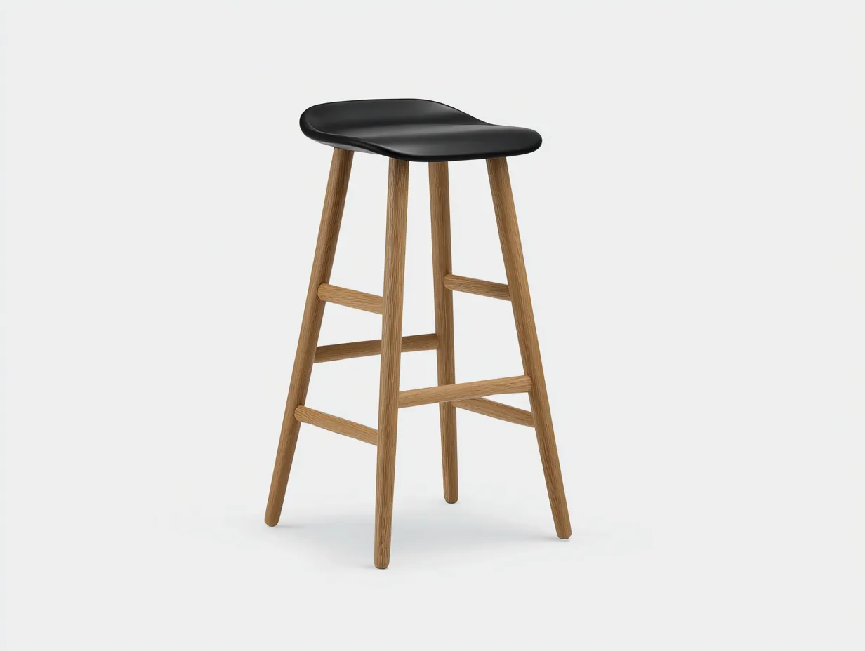 Taburete de bar con asiento negro curvado y patas de madera efecto roble 41 x 41 x 78 cm - para comedor - estilo nórdico contemporáneo