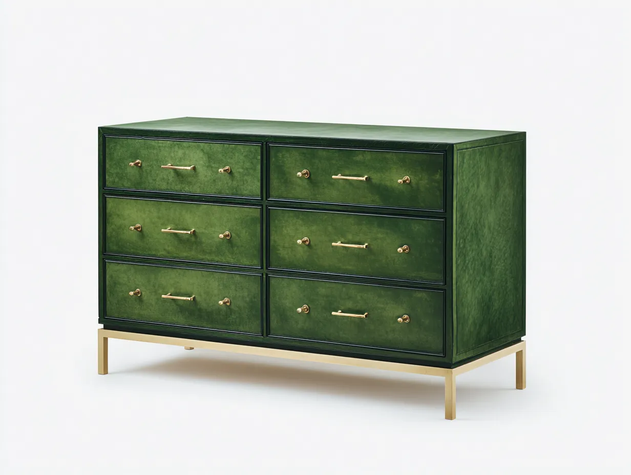 Cómoda metálica 140 x 45 x 82 cm - verde bosque - 6 cajones - diseño minimalista elevado