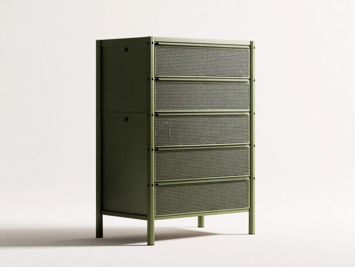 Cómoda metálica 80 x 42 x 120 cm - verde oliva - 5 cajones - estilo industrial con frente perforado