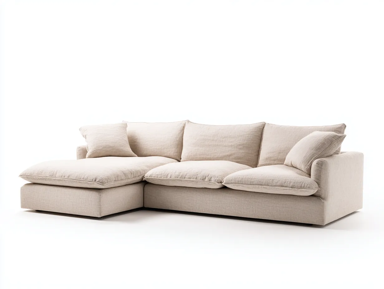 Este sofá rinconera en beige natural aporta una imagen suave y acogedora, ideal para salones que buscan confort diario con una estética serena. Su composición de perfil bajo y cojines amplios crea una sensación de descanso informal, mientras que el módulo lateral amplía la superficie útil para relajarse con mayor libertad. El tono claro del tapizado favorece una integración sencilla en interiores contemporáneos, mediterráneos o de inspiración natural, ayudando a crear un ambiente luminoso y equilibrado.